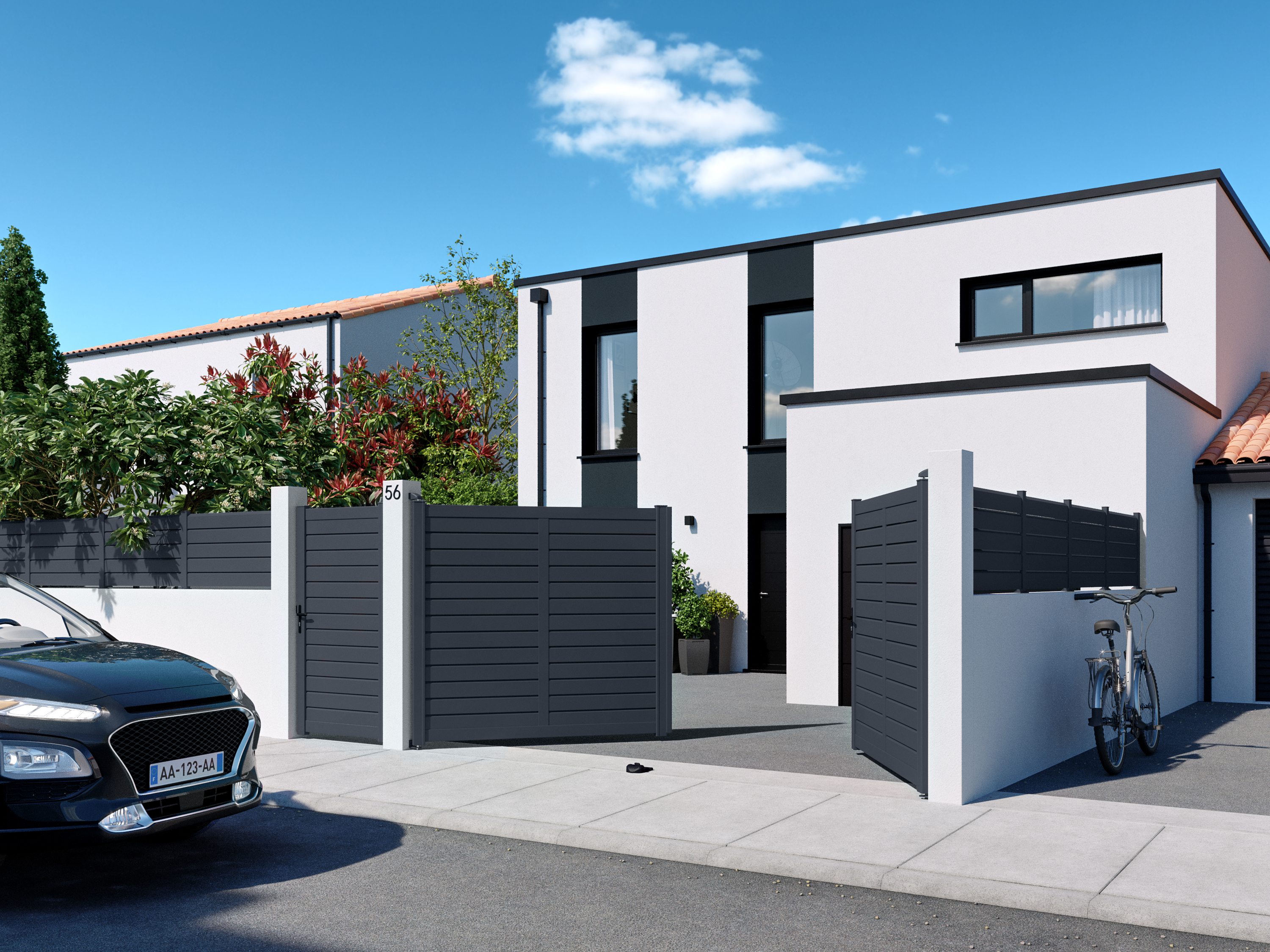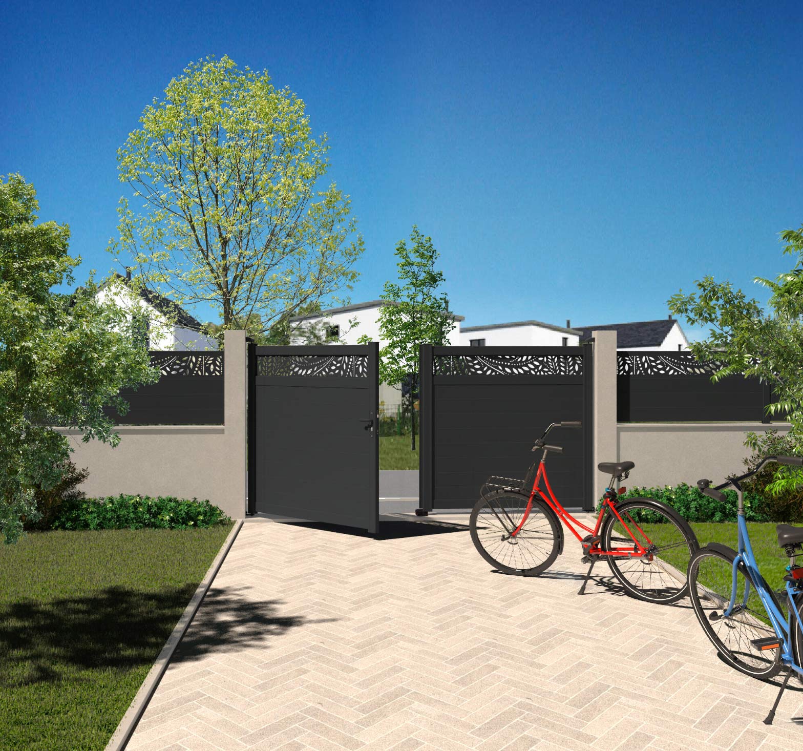 CONCARNEAU, un modelo macizo recto de aluminio de líneas contemporáneas y elegantes gracias a sus lamas ciegas de 90 mm. Es ideal para proteger tu jardín de las miradas indiscretas. Modelo disponible en diferentes medidas (ancho y altura).